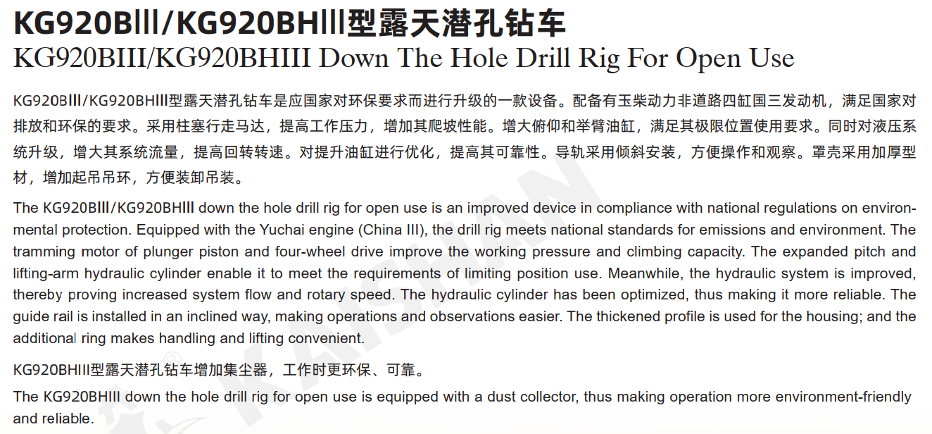 訂購產品:KG920BⅢ/KG920BHⅢ型露天潛孔鉆車